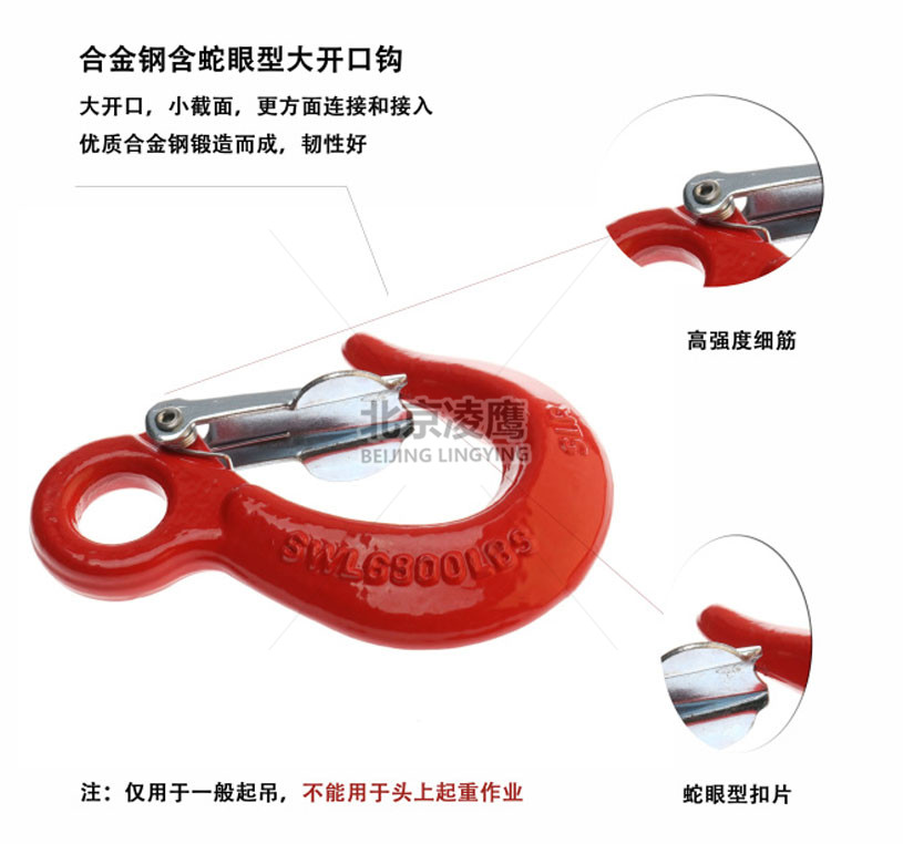 美式80級環眼吊鉤采用高級合金材料,使承受以外超負荷工作時不發生斷裂,隻是逐漸變形,安全係數更高;鉤頭處全新設計,使貨物不會脫鉤。吊鉤常借助於滑輪組等部件懸掛在起升機構的鋼絲繩上。本產品嚴格按國家3包執行,產品質量由中國人民保險公司(PICC)承保,請放心使用。