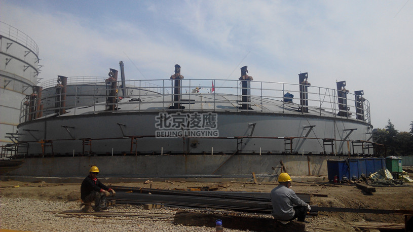 與第3圈間的環縫。組對好後焊接,焊完後回落膨脹圈,安裝到第3圈壁板下口。重複上述過程,知道罐壁全部安裝完畢。最後1圈壁板安裝時需留1張板的立縫不焊,待環縫組對後,在此開出大門,撤出罐內的倒裝裝置,再封大門並焊接。