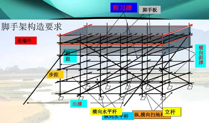27 2019-08腳手架立杆的構造要求腳手架的施工方案是建築施工從業人員的行為規範,是施工過程建築職工安全和健康的保障。腳手架施工的材料主要有腳手架和安全網。腳手架立杆的構造要求如下: 雙...